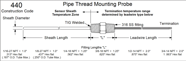 Designed to thread directly into a process or tank also to go into a thermowell with no contact to the bottom.