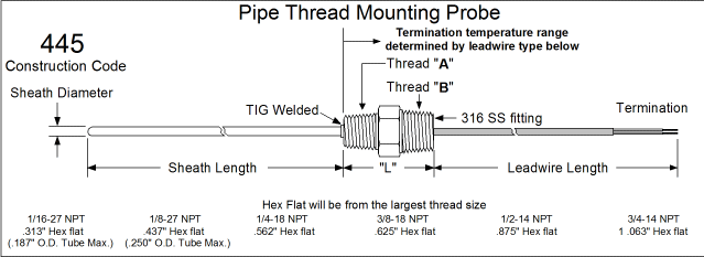 Fixed Different Size Thread RTD Assemblies – Type 445