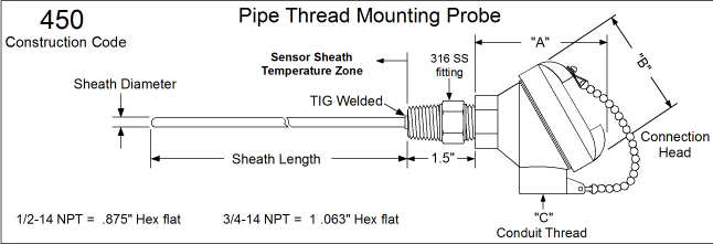 Fixed Double Thread and Head RTD Assemblies Large Thread Size – Type 450