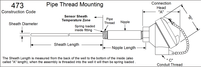 Spring Loaded Nipple Only and Head RTD Assemblies For Thermowell Mounting- Type 473